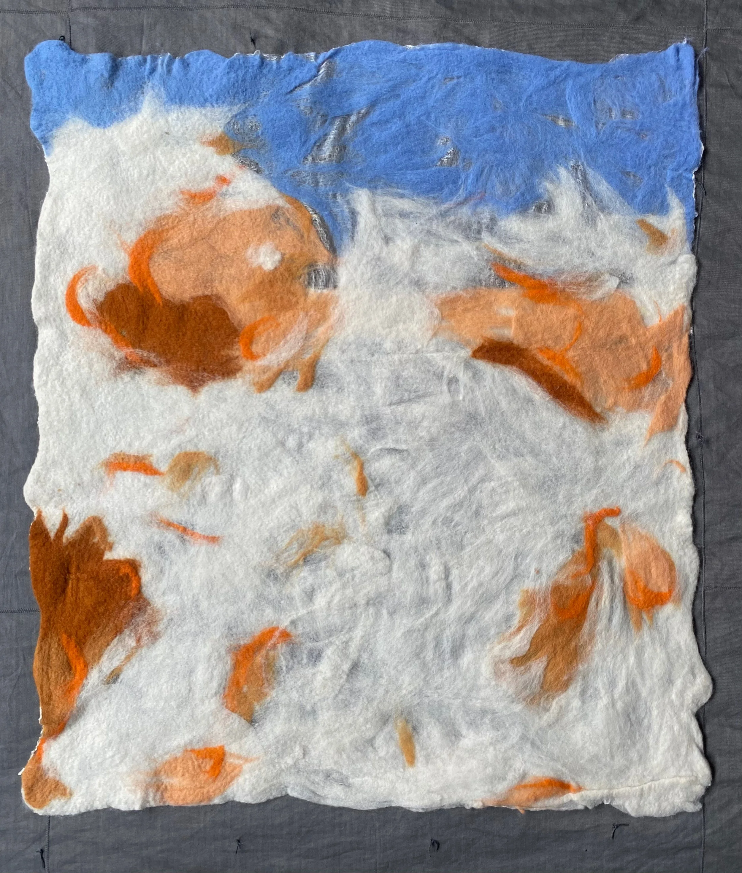 (white, orange, blue - felted wool on silk gauze)