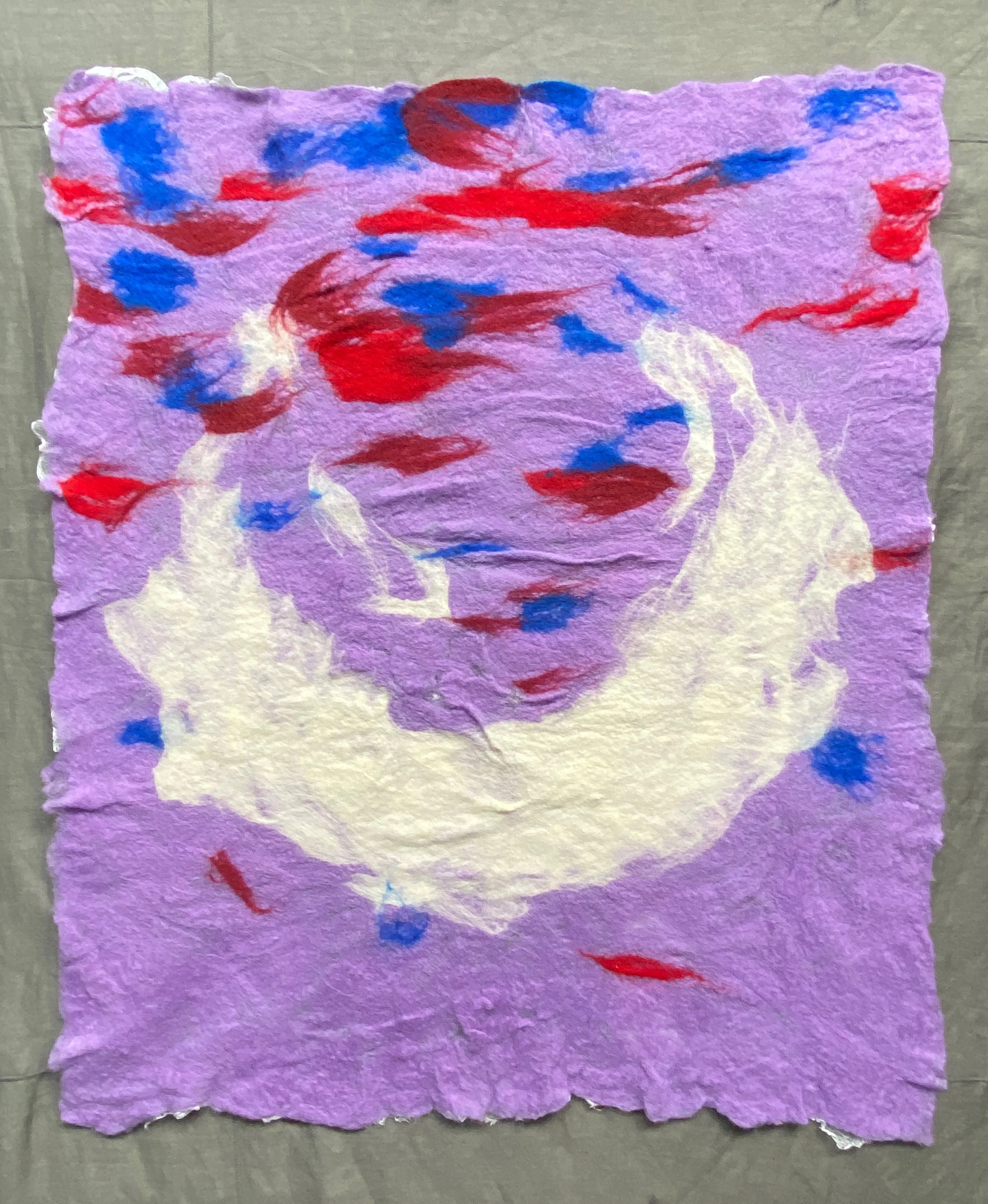 (lavender, white, reds, blue - felted wool on silk gauze)